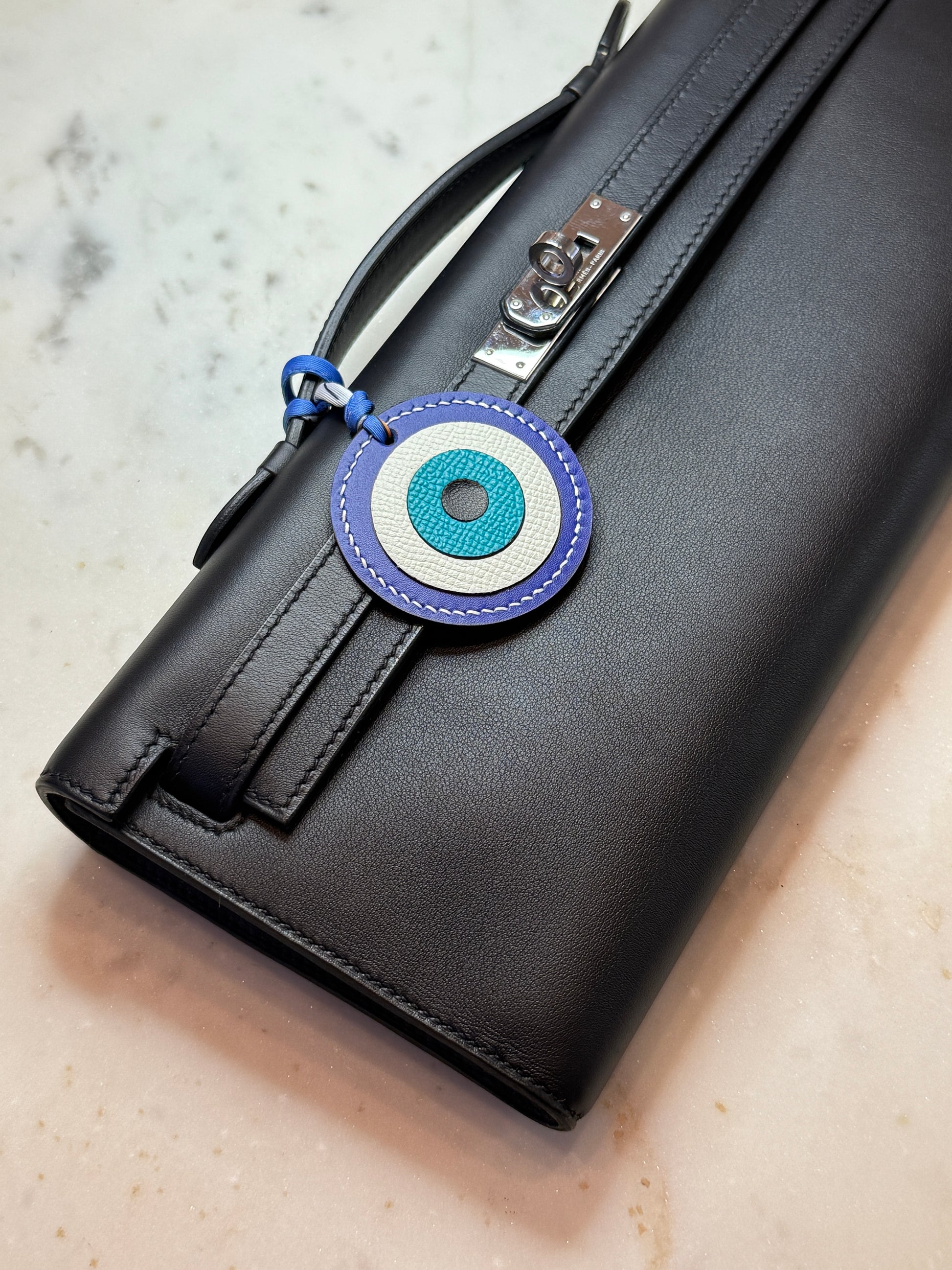 Evil eye bag charms blue and white calfskin